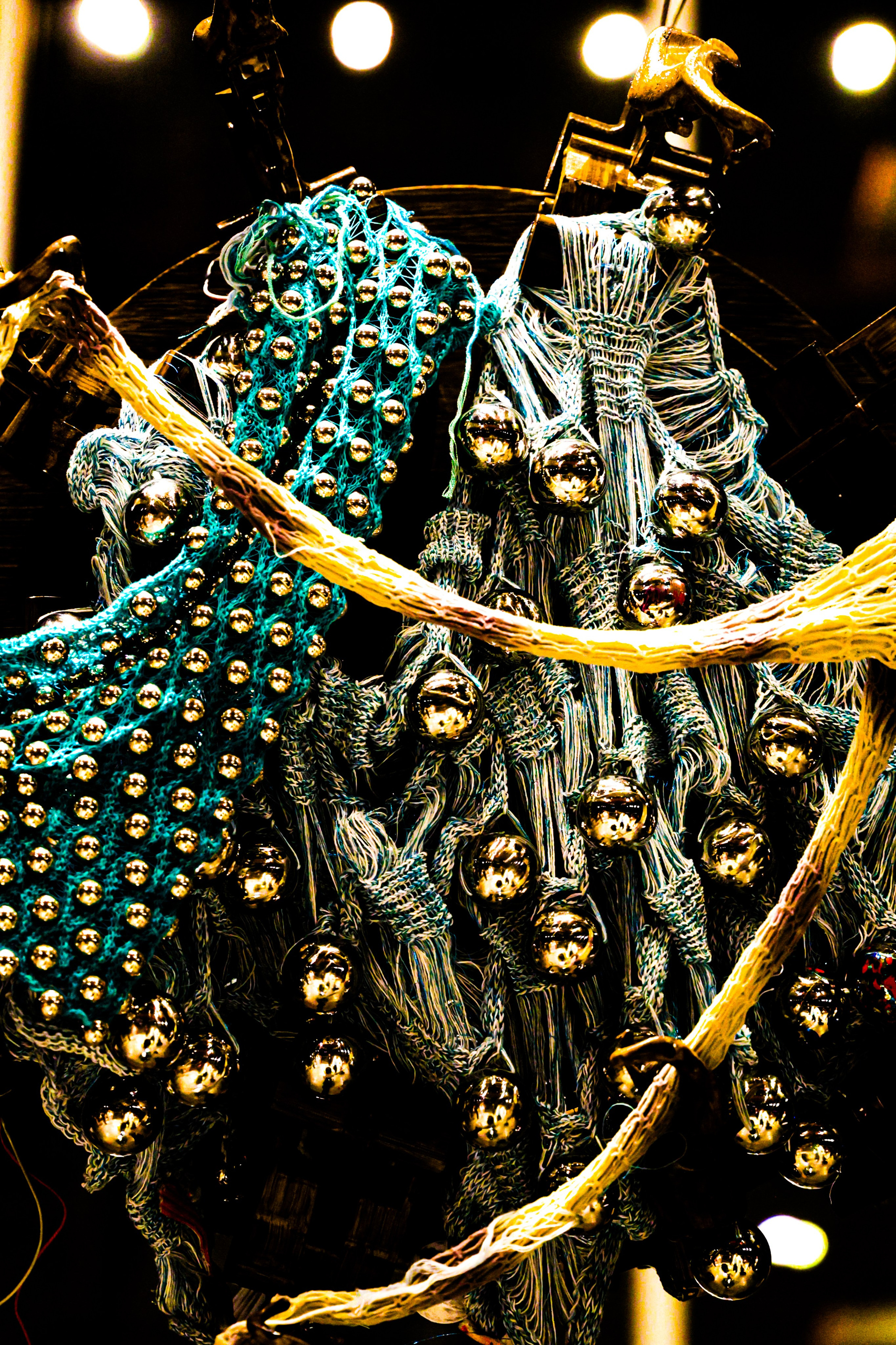 The first was near St. Lawrence Market, in a hangar that reminded me of the a toolbox. There was a man painting mandalas to music that sounded like something out of a Kubrick film or a Star Wars battle scene. Above was a small installation, which I can’t say I understood it, to be honest, but it looked cool. Then we went looking for the second location — an immersive projection of a drop of water from Lake Ontario. We couldn’t find the entrance, so we accidentally ended up in the underground PATH shopping mall. It was deserted, but the lights were on: an amazing experience. From there, we exited through an office building, where one of our executives asked for directions, and only thanks to that did we find our way to the right place. I liked this installation the most. It had a great vibe, and the music was pleasant. Then we took the metro to a third location, which had an exhibition of female artists (the knitwear and paintings are from there), but it was so hot that we quickly ran away to Chinatown. Because we were waiting for one of the participants, who stayed on the other side of the road, three others and I got lost, but luckily found the address and we found our way to the right stop.